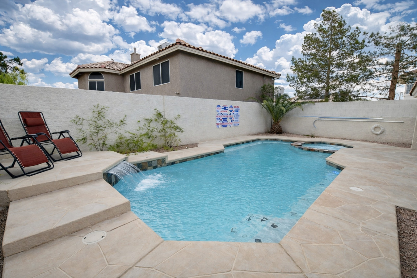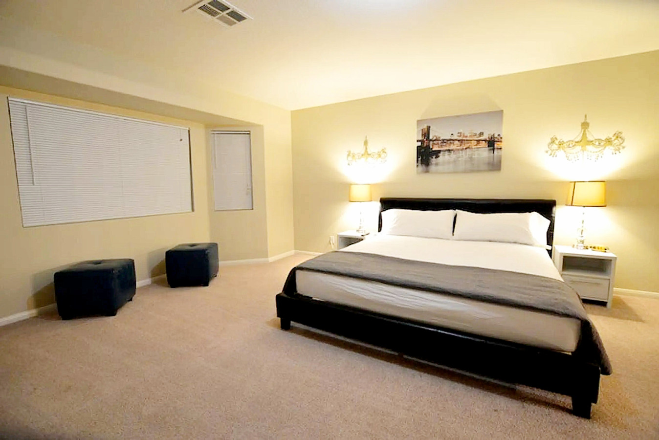 This grand, 3,300 square foot home features 5 bedrooms, and 3 bathrooms, a 3 car garage, pool, spa, barbecue, dual game rooms, wet bar, 32 inch flat screen TVs in each bedroom, and so much more. This newly remodeled home has been tastefully decorated in sleek, contemporary style and décor.